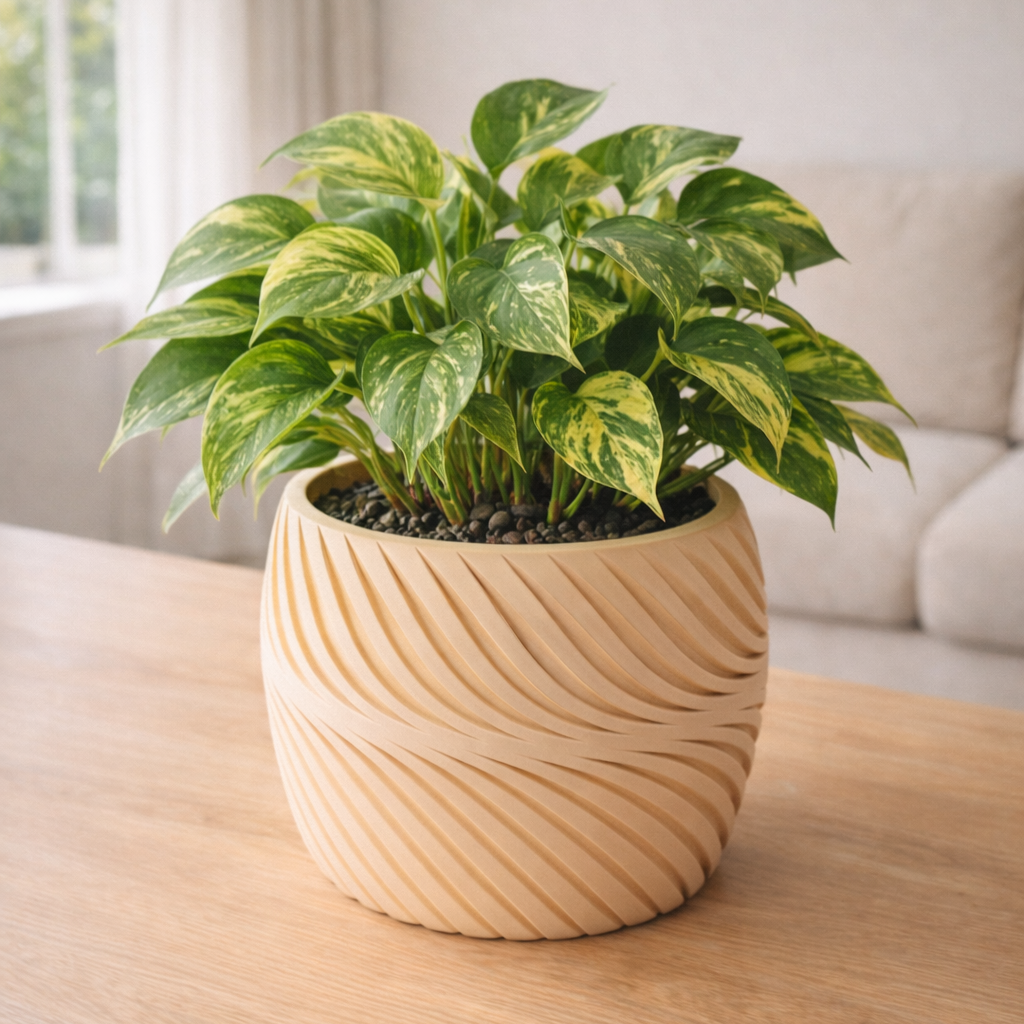 The Dandenong – Ribbed Half Spiral Pot is a contemporary 3D printed planter defined by its distinctive half-spiral rib design. Unlike uniform rib patterns, the flowing wrap detail creates a dynamic split effect — giving the pot movement and visual depth from every angle.